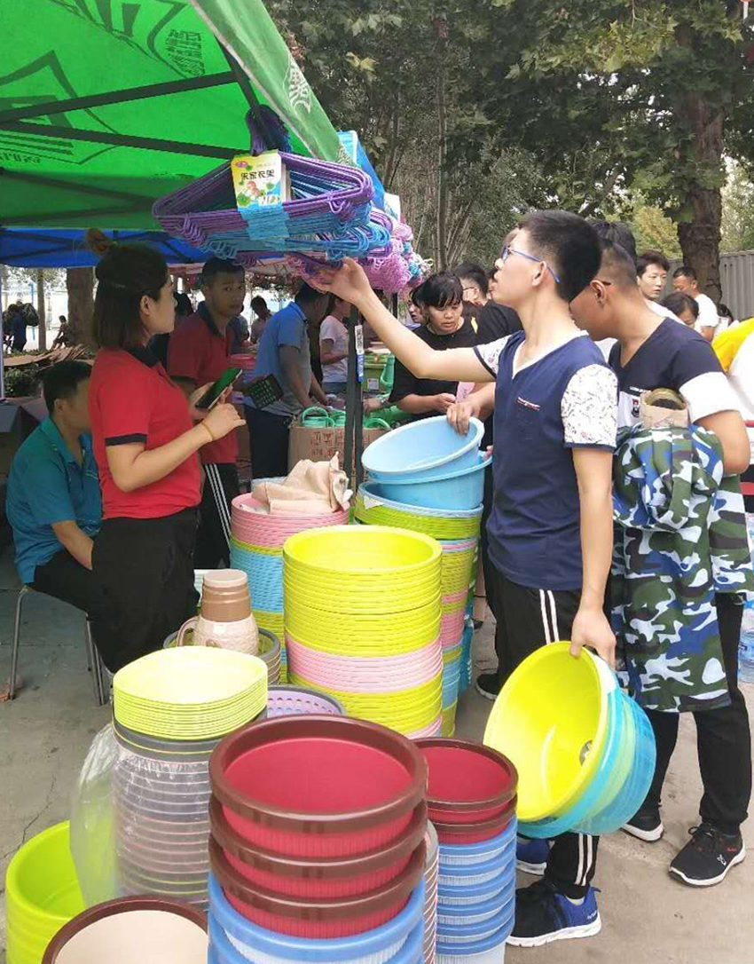 “這兩種暖瓶?jī)?nèi)膽是一樣的,但是外殼的材質(zhì)不同,價(jià)格高的這一款外殼設(shè)計(jì)更個(gè)性一些。您放心,我們超市提供七天退換服務(wù),您可以先試用一下。”……這位耐心又專業(yè)地給新生和家長(zhǎng)介紹商品的員工是信息學(xué)院店戴紅玉。早上六點(diǎn)多她就來(lái)到了店里,忙著收銀、搭建外場(chǎng)、懸掛促銷信息牌,之后又跑進(jìn)跑出,跟其他部門幫忙的同事介紹商品、價(jià)格、收款注意事項(xiàng)等。到了中午吃飯時(shí)間,顧客逐漸減少了一些,戴紅玉總算稍稍松了一口氣,聊起了開學(xué)季的情況。“這是俺店第一次搭建外場(chǎng),沒(méi)想到外場(chǎng)的銷售還挺好,之前的辛苦沒(méi)白費(fèi)。”